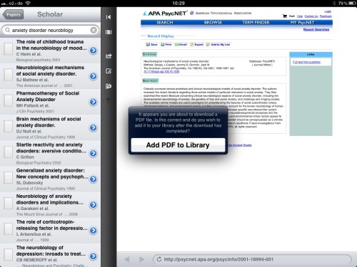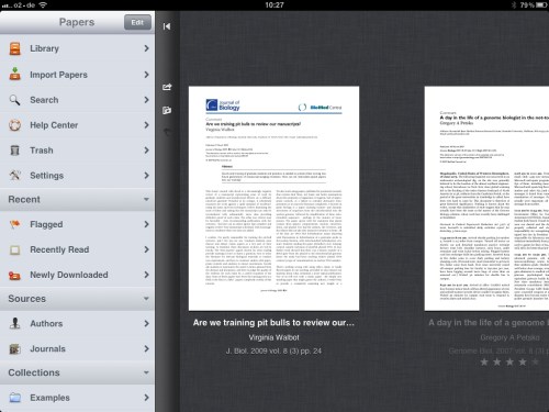 Und wer sich auf seinem iOS Gerät oder seinem Mac eine Literaturdatenbank zurecht legen will, die alle Artikel perfekt verwaltet, und aus der man direkt eine google scholar oder pubmed Suche machen kann, und dann die gefundenen Artikel auch gleich perfekt katalogisiert importieren will, frei durchsuchbar und verwaltbar, der guckt sich ‚papers‘ an. Das funktioniert perfekt. Meine Empfehlun