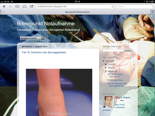 Hier bloggt ein Unfallchirurg direkt aus der Chirurgischen Notaufnahme. Mit Fotos von Befunden, Röntgenbildern und diagnostischen Fragen zum Mitmachen. Also ich kann nicht genug davon bekommen!
