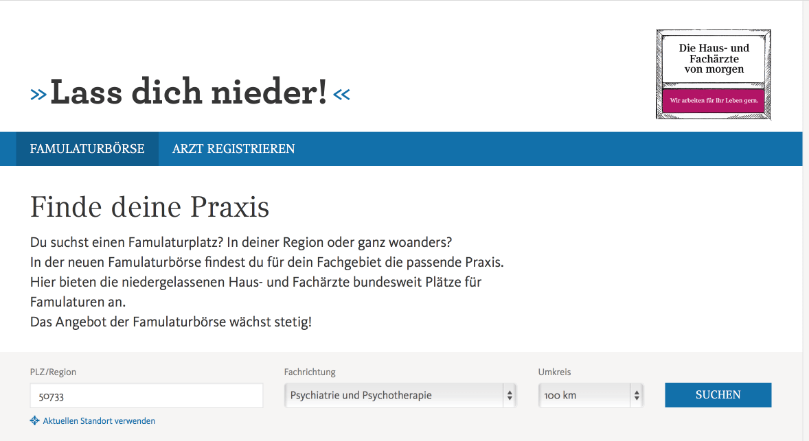 Zur Famulaturbörse geht es hier.