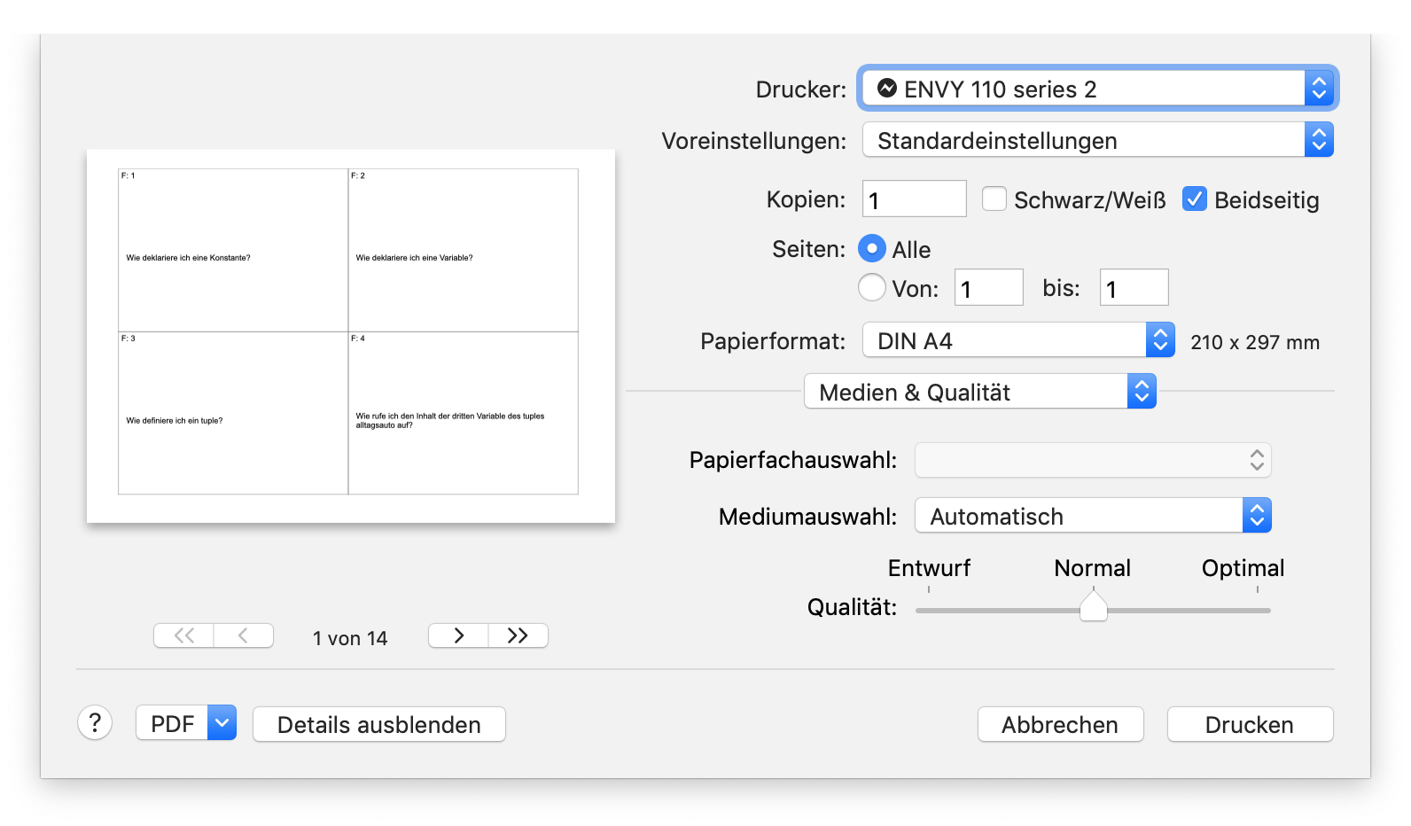 Mit Kartenheld kann man seine Lernkarten auch beidseitig auf Papier ausdrucken, ausschneiden und dann wie normale Lernkarten verwenden. Sehr praktisch!